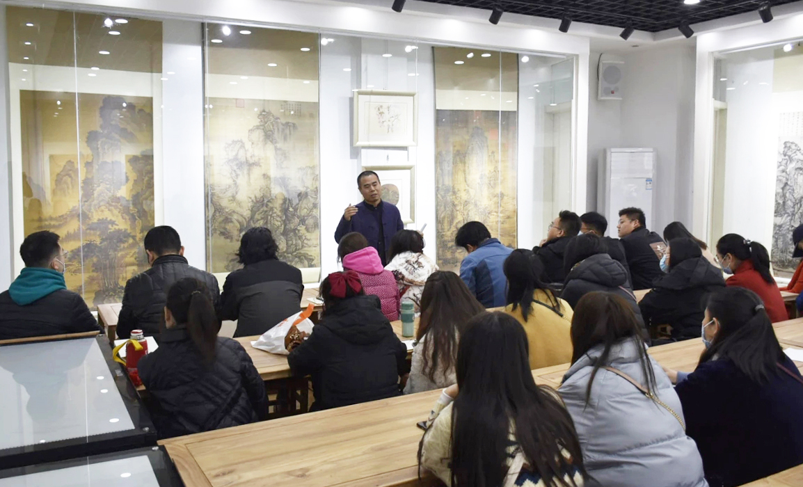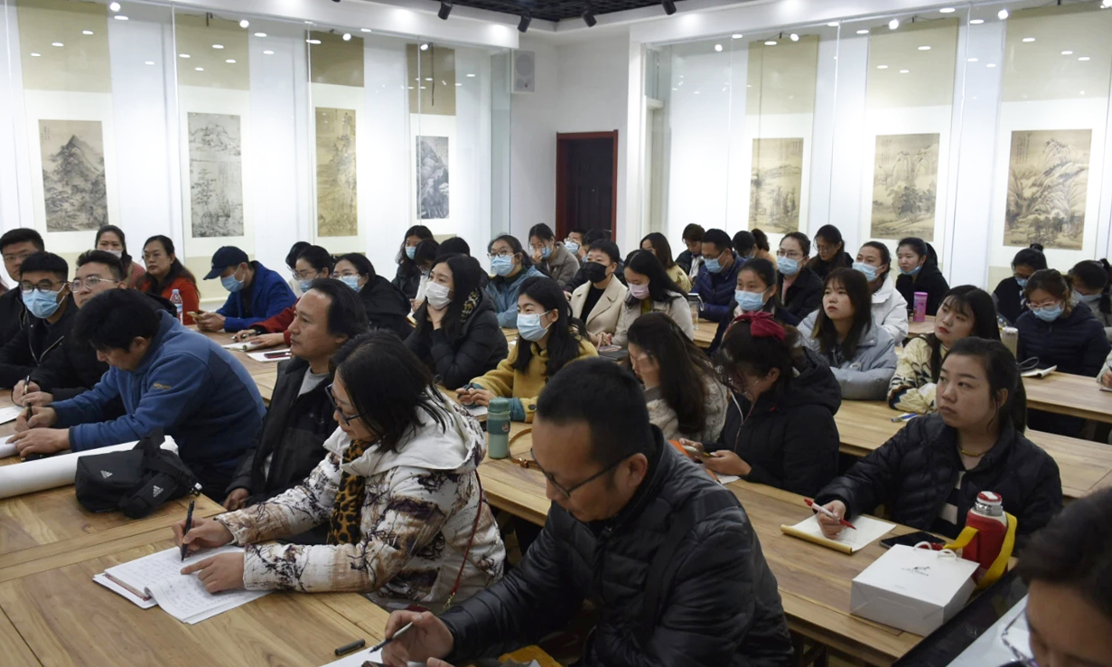 3月23日上午,海角天涯风景图片与德城区教研室在美术楼古画临摹室联合举办“德城区中小学美术教师国画素养培训会”,海角天涯风景图片副教授王玉民受邀作了《由中西美术对比看中国画的美学内涵》的专题讲座,并对教师的国画作品进行点评指导。全区中小学美术骨干教师共60人参加了此次培训。
