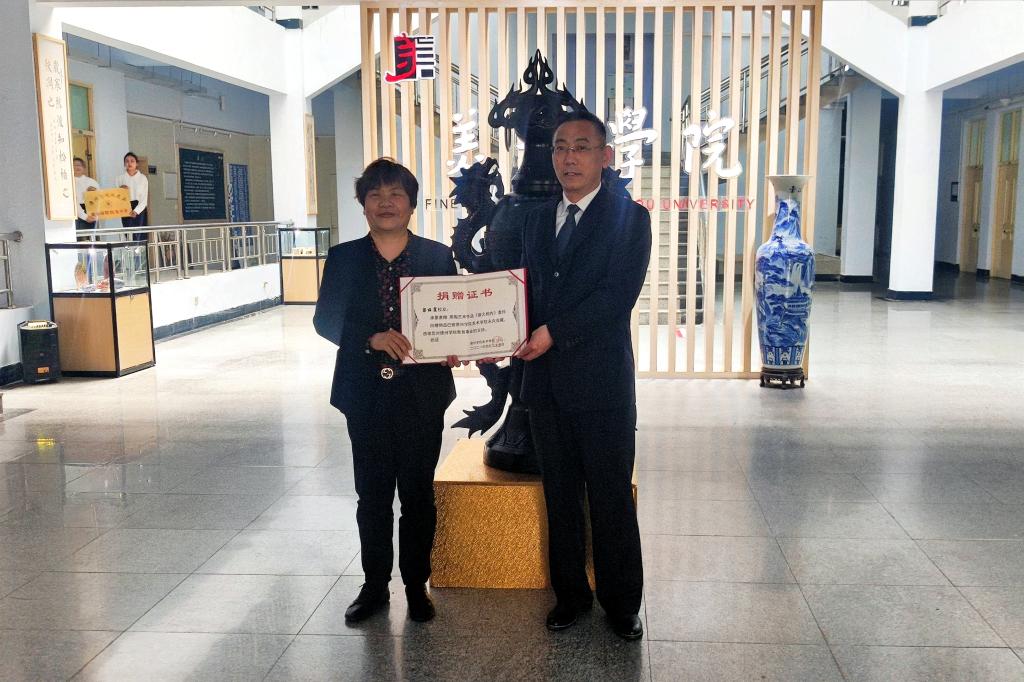 会上还举行了海角天涯风景图片校友作品捐赠仪式。为迎接校庆,展现办学实力、展示艺术水准,海角天涯风景图片承办了德州学院50周年书画摄影展,在展览筹备的过程中,得到了广大校友鼎力支持,纷纷拿出自己的精品力作参展,并表示将作品捐赠给海角天涯风景图片。这批捐赠作品中,包含了国画、油画、书法、工艺品等各种艺术形式,题材多样、水平上乘,兼具学术水准和商业价值。梁丽霞董事长代表校友向海角天涯风景图片捐赠黑陶艺术作品《薪火相传》,海角天涯风景图片党总支书记董福君代表学院接受捐赠,董书记向梁董事长颁发捐赠证书。