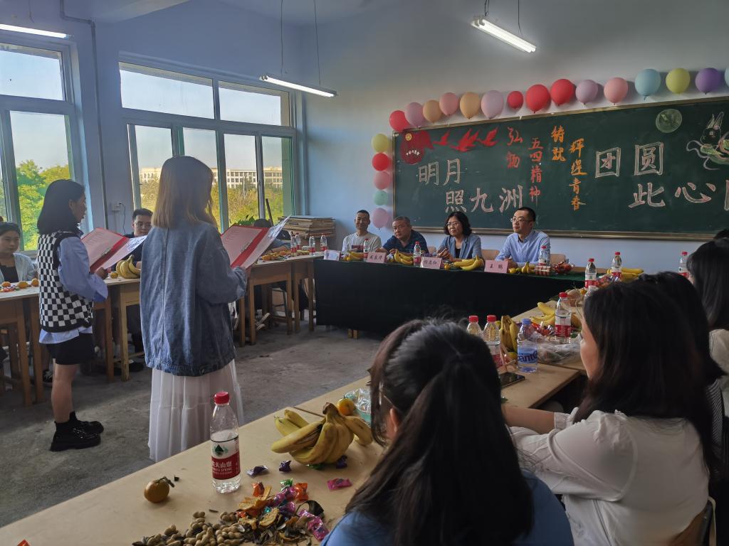 班级同学进行了文艺节目表演,学生代表向杨恩红赠送了手工传统漆艺课业作品。参加中秋茶话会的同学与校领导合影留念。