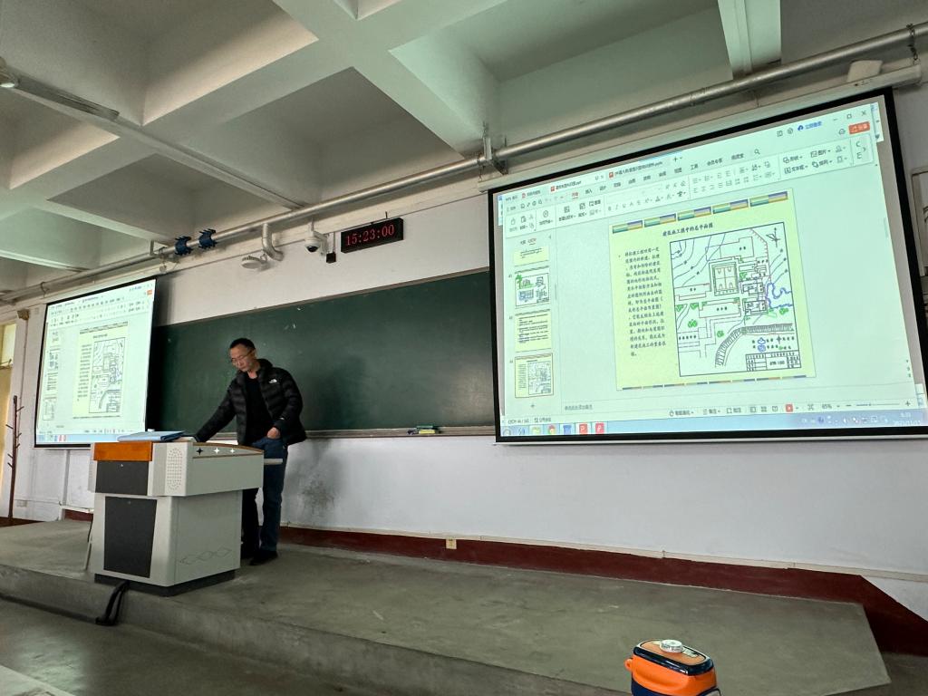 陈坤以丰富的一线实践经验,从项目实践案例出发,深入浅出地给同学们讲解了工程及施工技术的概述、流程、材料、方式等。授课结合工作实际、通俗易懂,具有很强的针对性、指导性。两门课程的教学活动还组织学生到工程现场、公司展厅进行了实际项目的观摩见习。