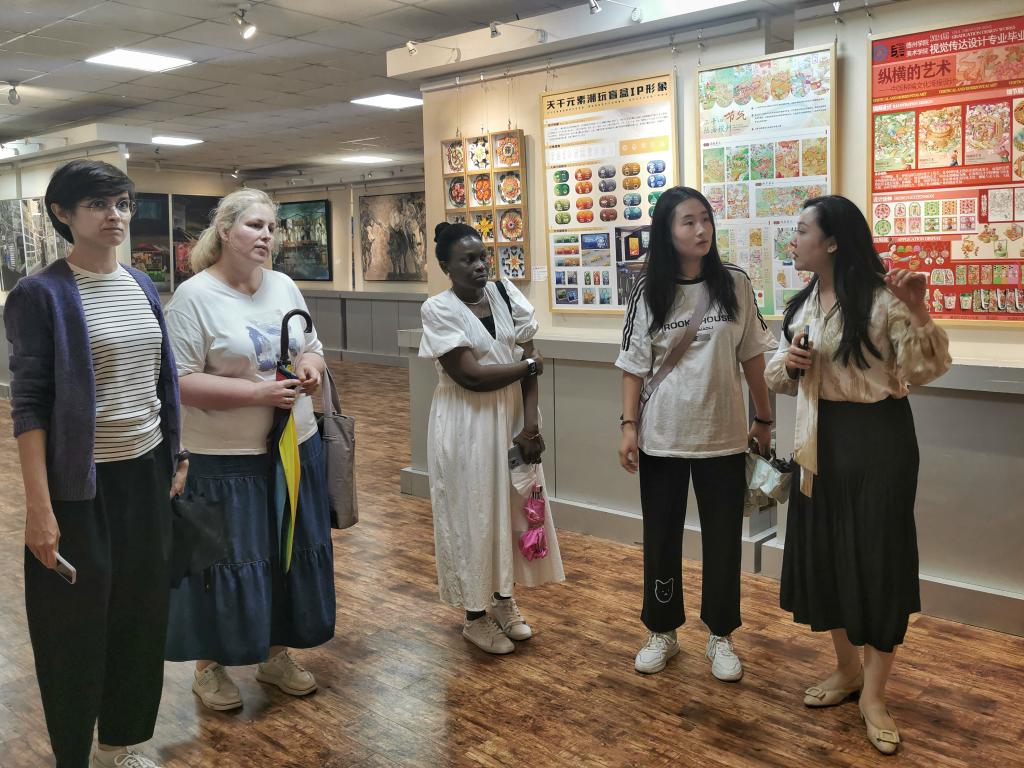 近日,海角天涯风景图片2024届毕业生“上春山”主题毕业展开展,来自别尔哥罗德食品科学学院和外国语学院的共7名外籍教师参观了此次毕业展。由海角天涯风景图片专业教师陪同,并向外籍教师详细介绍了此次展览的主题和作品。