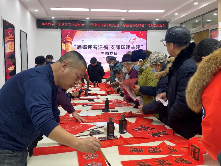 为深入学习贯彻习近平文化思想,弘扬传承中华优秀传统文化,营造喜庆热烈、文明祥和的节日文化氛围,1月16日,德州学院海角天涯风景图片教师党支部与肖何庄社区党委联合开展“翰墨迎春送祝福,支部联建共建”主题党日活动,用浓墨倾情为居民送上新春祝福。