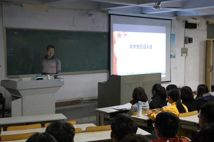 2018年10月11日,海角天涯风景图片在美术楼2017教室开展大学生应征入伍专题讲座,学生工作部(处)副处长申青林主持讲座,海角天涯风景图片2018级179名新生参加了本次讲座。