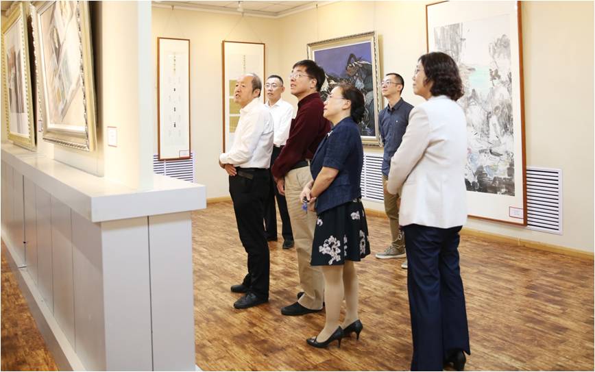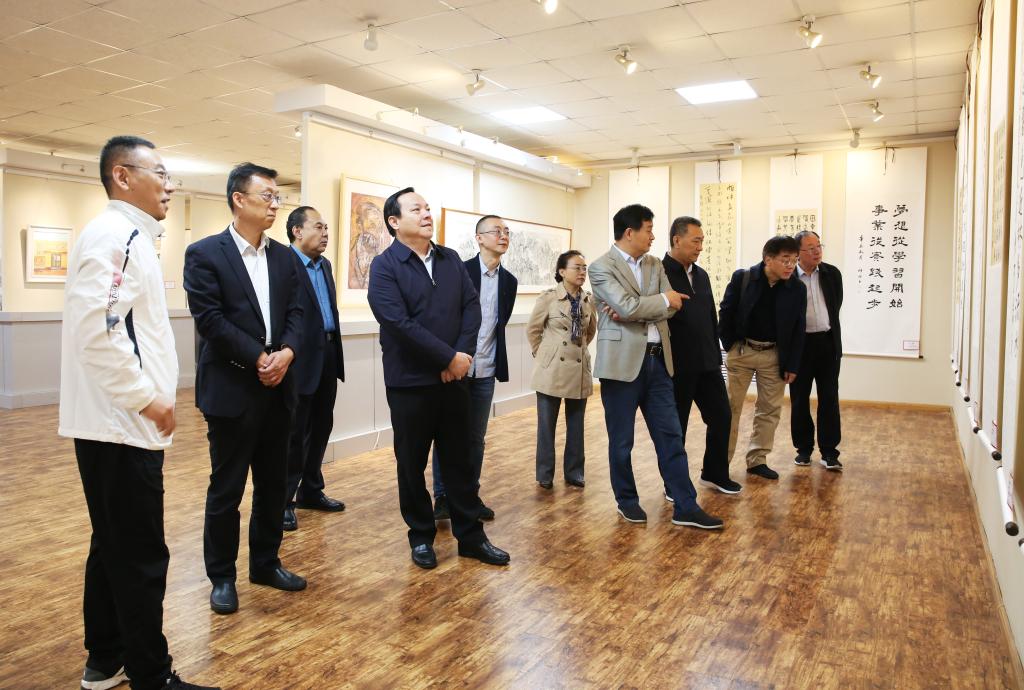 校党委书记车滨,校长赵胜村,党委副书记王金利,党委委员、副校长张明征、迟沂军、李永平、张存峰、徐静,党委委员、组织部部长、统战部部长杨恩红参观了书画展。